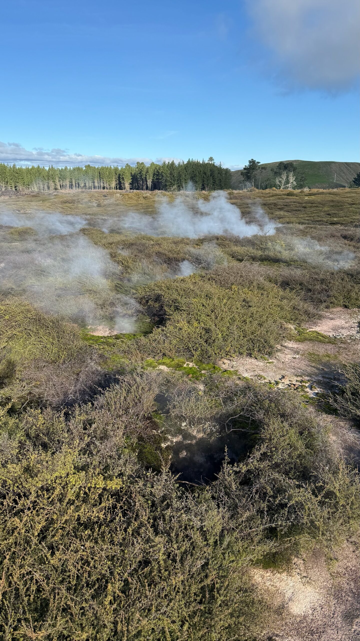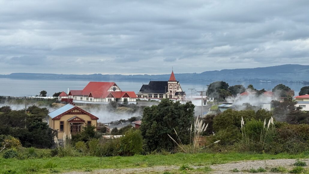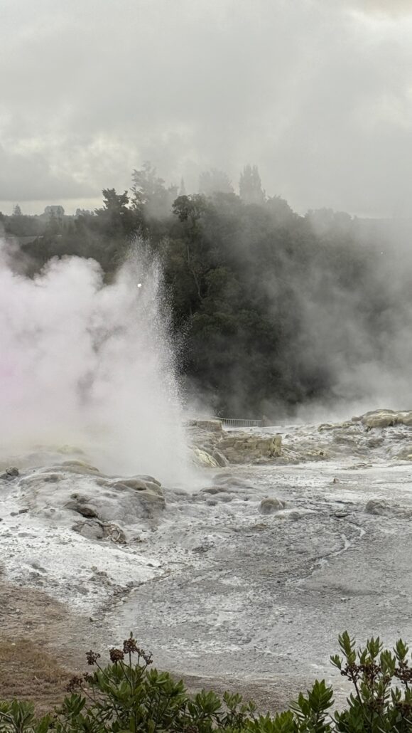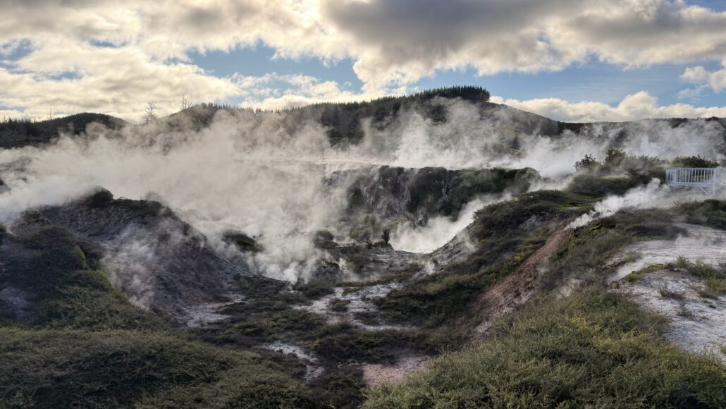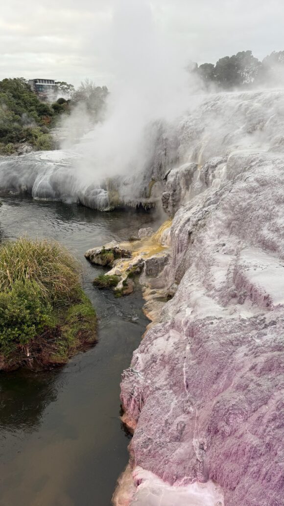 Nous poursuivons au nord vers Rotorua, ville dont l’activité géothermique est visible à chaque coin de rue.