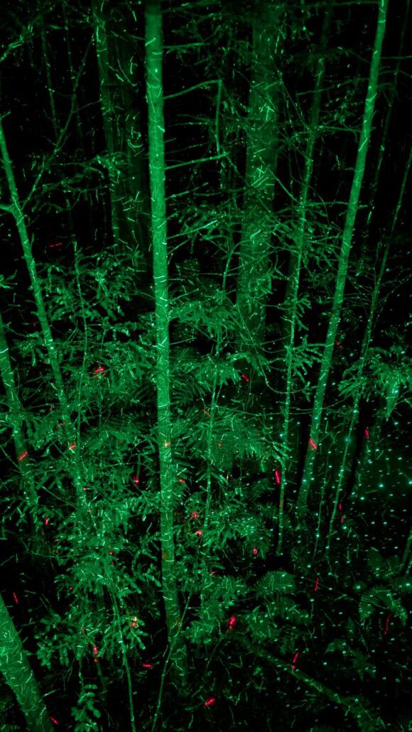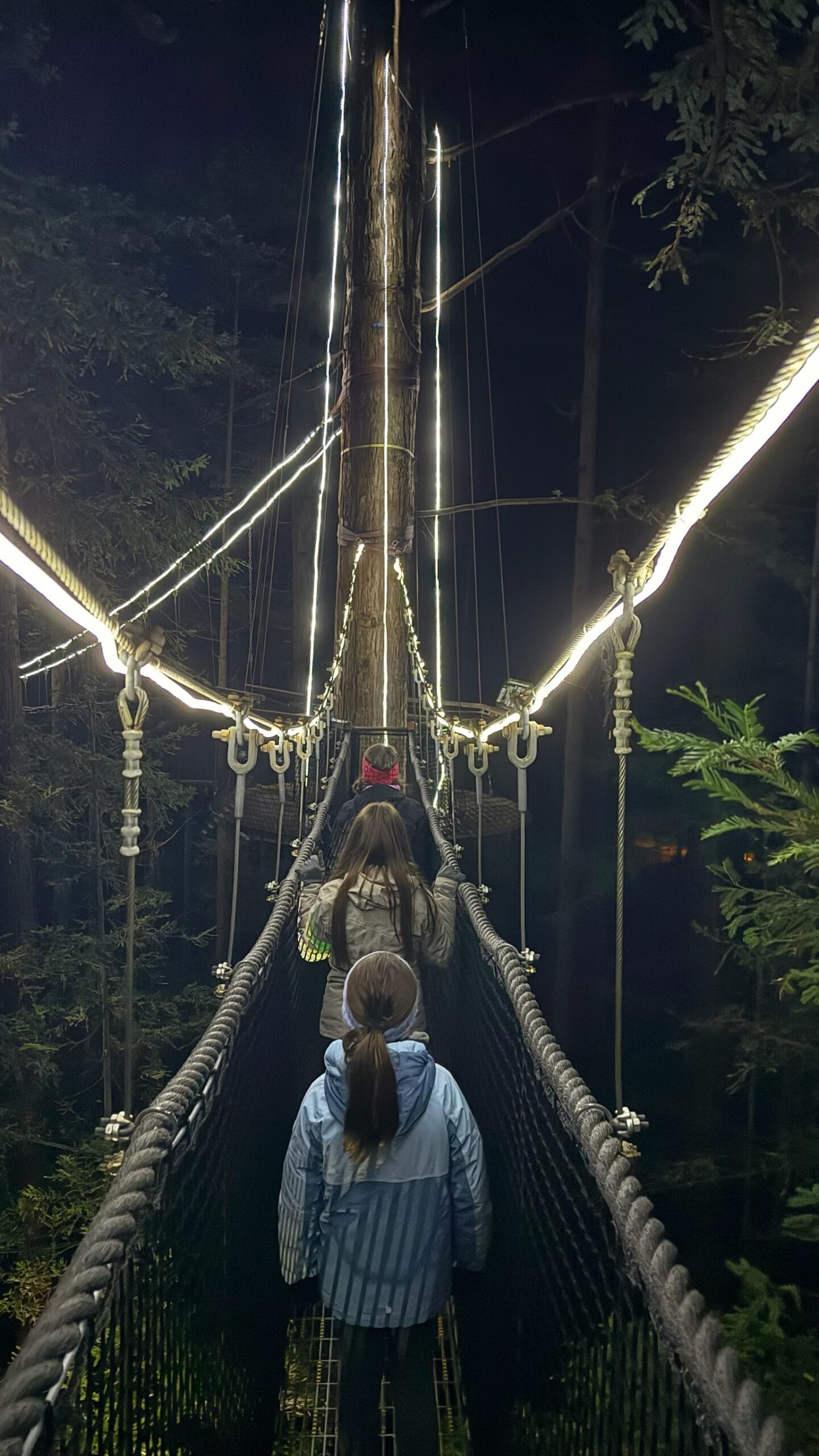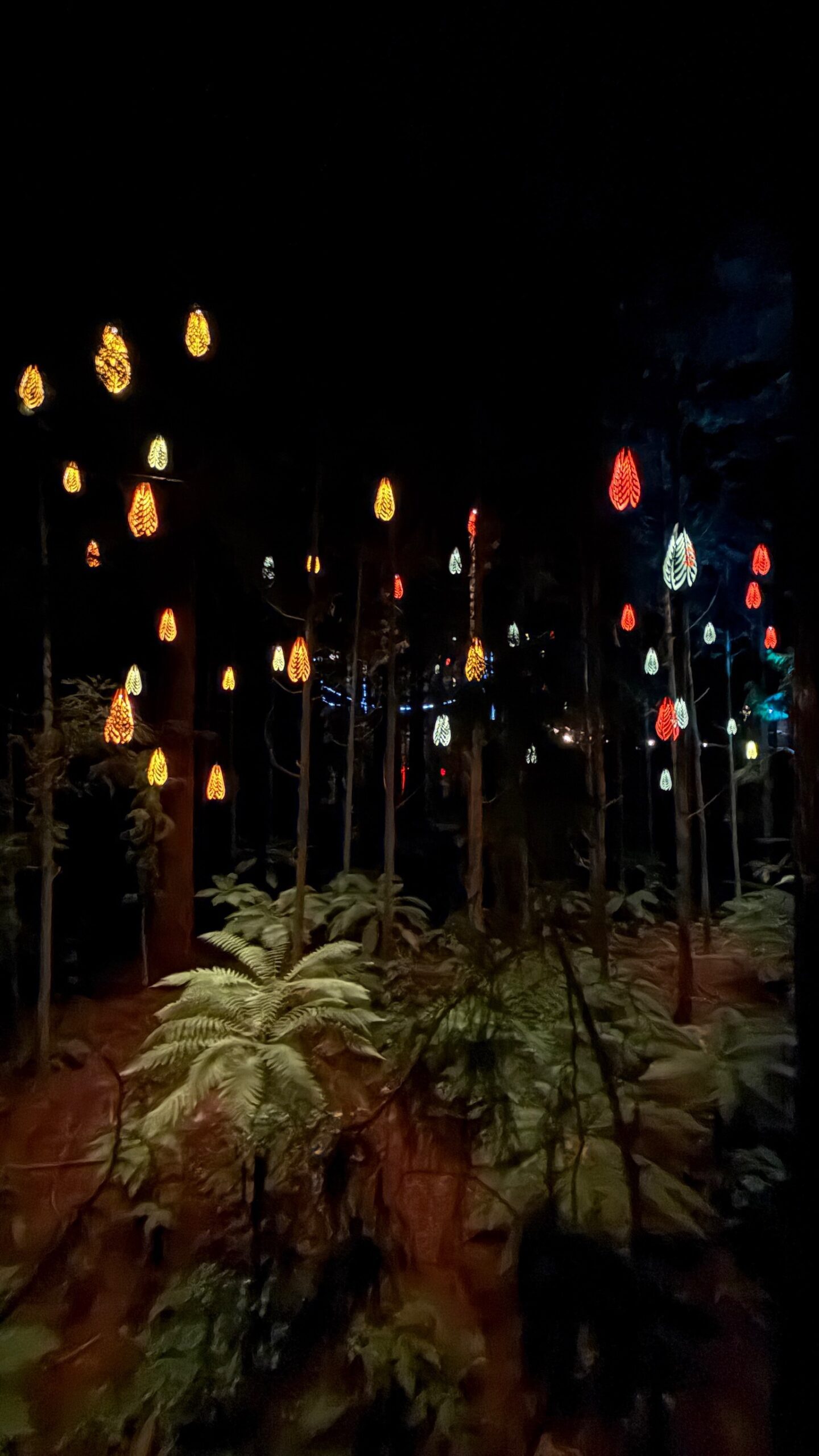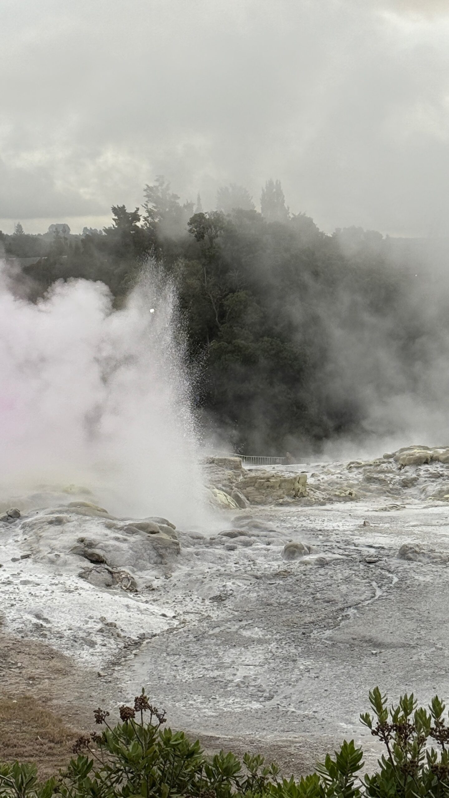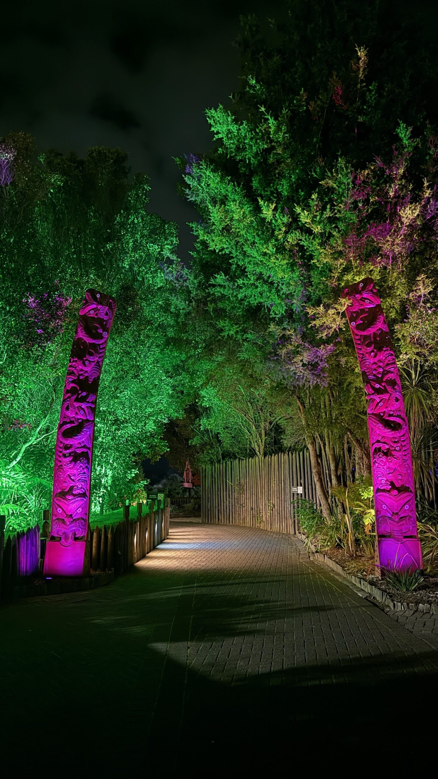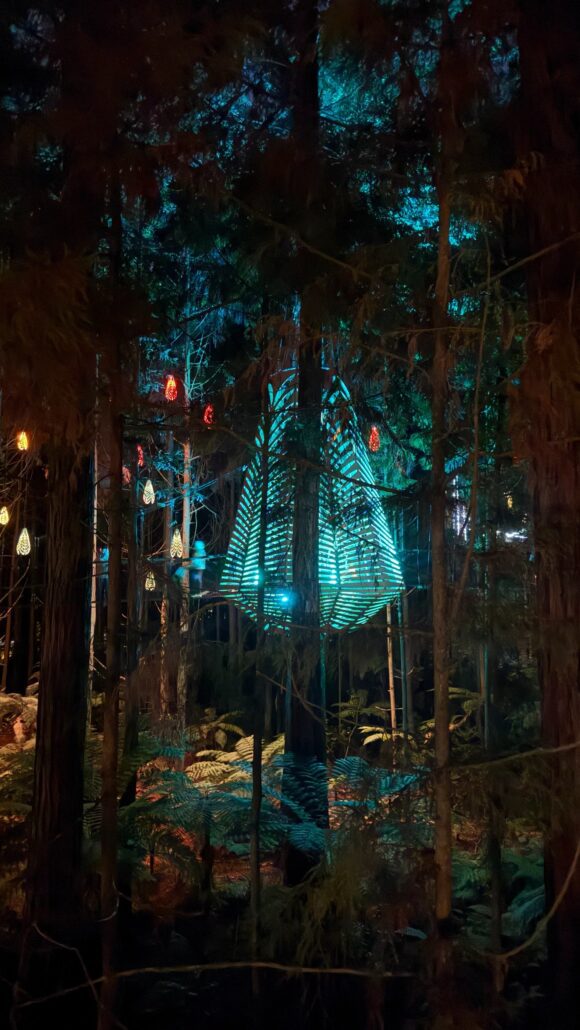 Nous faisons aussi une balade nocturne et illuminée sur des passerelles à quelques mètres de hauteur au milieu des séquoias, et visitons le site maori et géothermique de Te Puia.