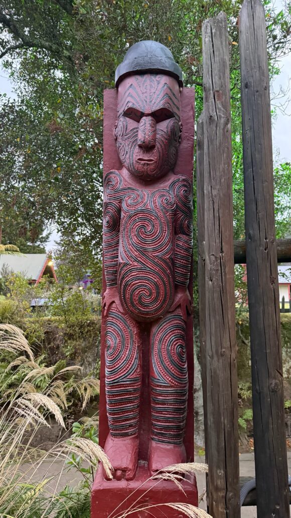 Nous y découvrons l’un des plus grands geysers de Nouvelle-Zélande, Pōhutu, qui peut jaillir jusqu’à 30 mètres de haut — mais qui nous a boudés ! Il y a aussi des bassins de boue bouillonnante, des fumerolles, et un centre culturel maori avec des sculptures magnifiques. Nous avons également vu des tissages, écouté des chants traditionnels, assisté à une démonstration de haka à donner des frissons, et même aperçu des kiwis dans une petite maison sombre spécialement aménagée.