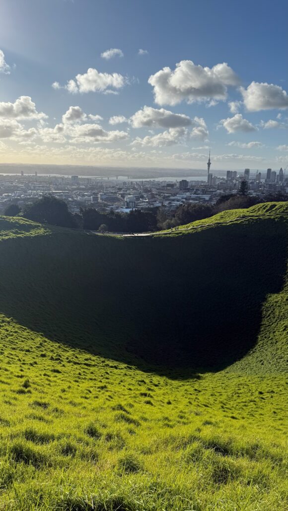 Enfin, nous passons nos derniers jours à Auckland, la plus grande ville du pays. Construite entre mer et volcans, c’est une ville très étendue, aérée, entourée d’eau et pleine de verdure. Nous avons aimé nous balader dans le centre, admirer la vue depuis le mont Eden (un ancien volcan), et nous détendre au bord de l’eau autour du port.